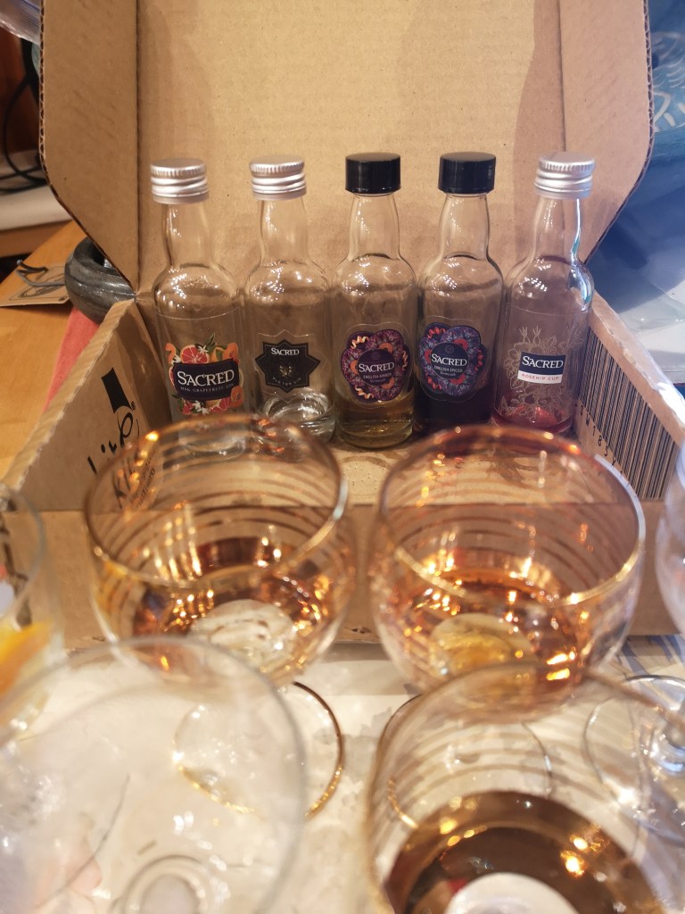 Back to the evening at hand, because of the ongoing ban on group gatherings (because of Covid-19), tonight’s gathering was via the medium of Zoom… We had all bought a tasting set from Sacred a month in advance and all except one set had been delivered intact. Quick work from Siobhan of Sacred ensured that this was replaced in plenty of time for the Negroni evening