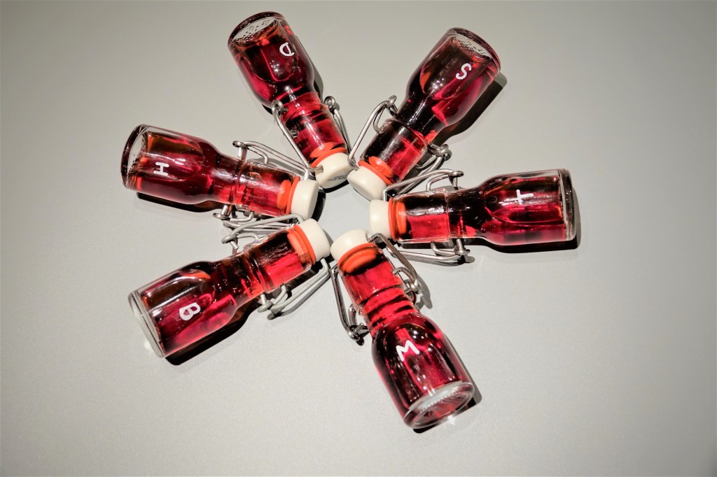 The bottles were filled as per the list above with the addition of a dash of water to mimic the ice melt that usually occurs.