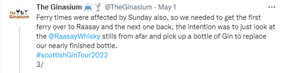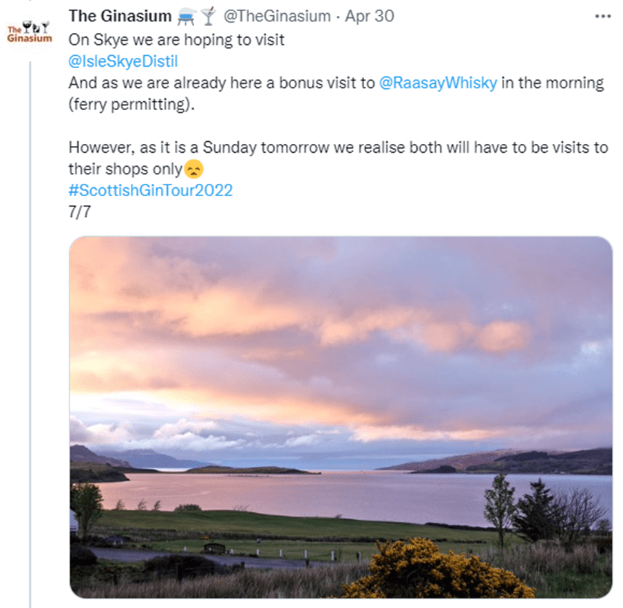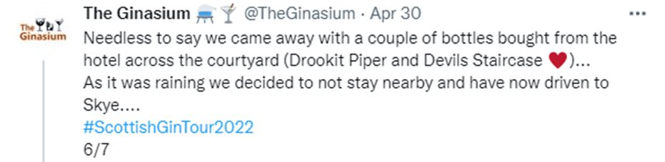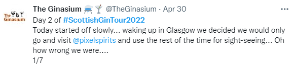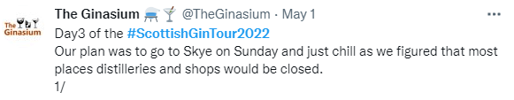 Rather than rewrite what I wrote at the time on Twitter (@theginasium using the tag #scottishgintour2022), here are my original tweets from the tour, reassembled, with some additional comments and photos/maps. It is lengthy but there might be something in it to interest you.
