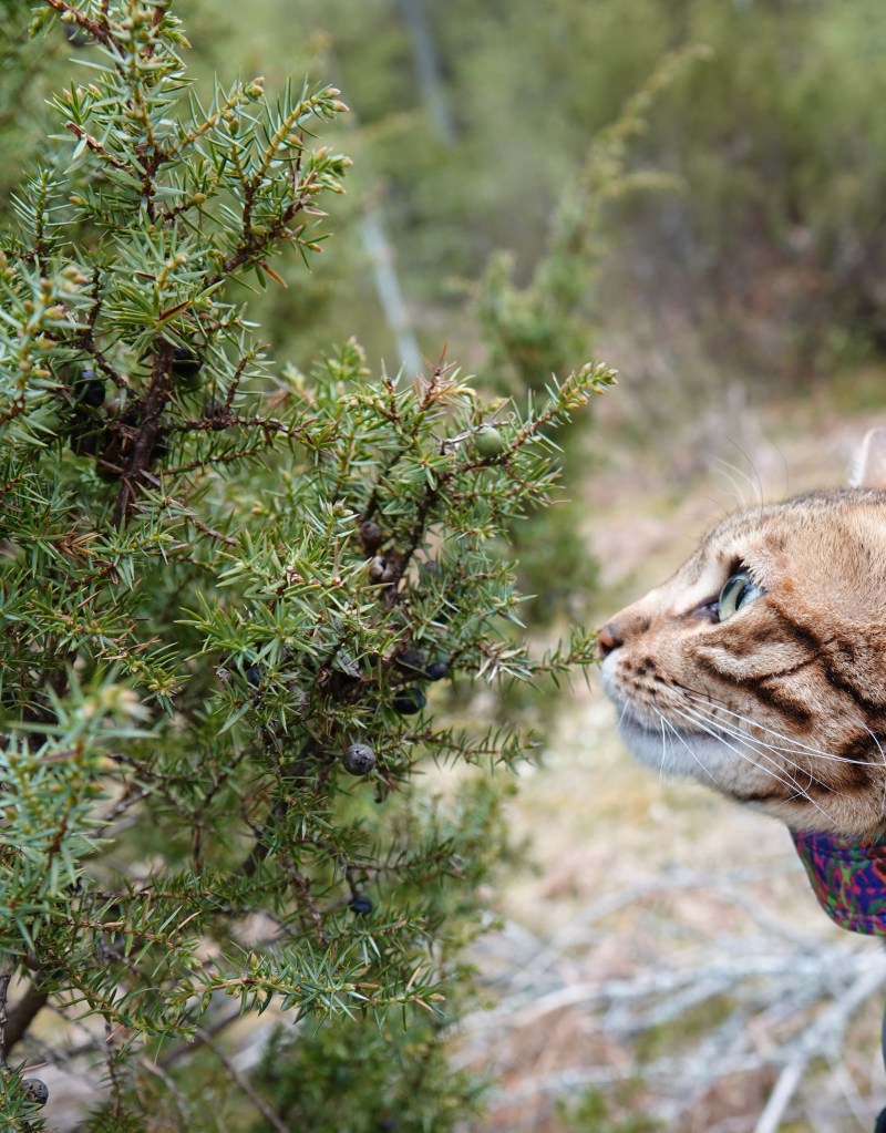 The Inshriach Distillery is in stunning country side beside a valley filled with wild Scottish Juniper. Walter the distiller and owner had said we could park on site and we went out for as long walk up the valley with Mouse to take a look at the wild juniper.