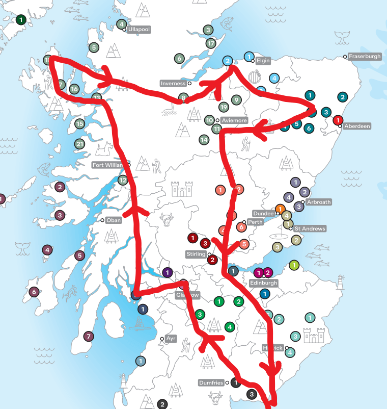 You can download the original of this map (without our scrawlings) from the @TheGinCooperative site, which is a great source of information on everything Scottish Gin related. Natalie and Martin who run The Gin Cooperative also invited us to stay over for one night during the tour