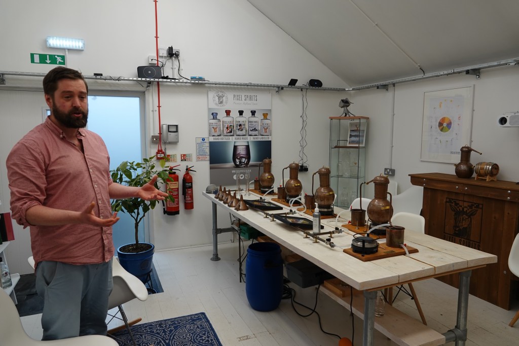 Pixel Spirits was our next stop on our tour. Their distillery is tucked away within the grounds of a hotel which of course a very good Gin bar. We were so pleased that Craig could find time from his busy schedule to show us around and chat about his production methods. They also have a lovely separate Gin School room for private and corporate classes.