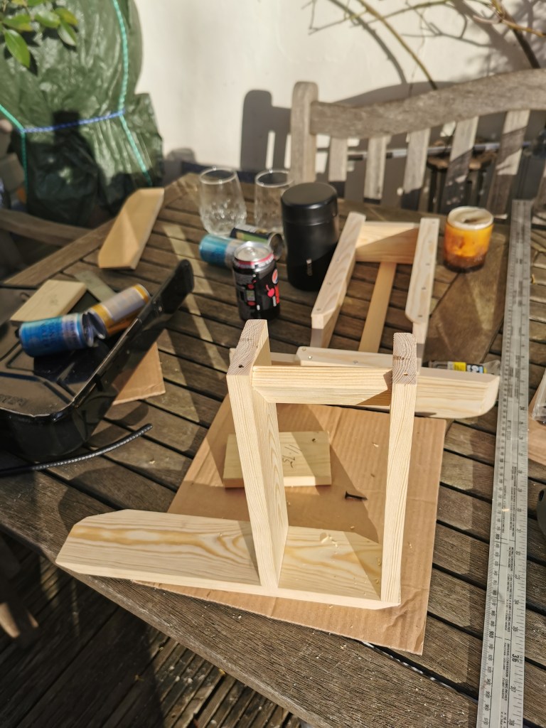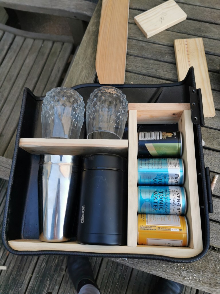 Finally you will see between this image and the final image that some additional pieces of wood had to be added so that bottles and cans did not clash when the can was closed and clipped shut.